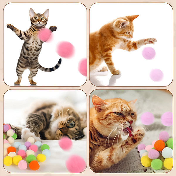 Με ζωντανά χρώματα, αυτές οι βελούδινες μπάλες τραβούν την προσοχή της γάτας σας, κάνοντας το παιχνίδι πιο συναρπαστικό. Παρακολουθήστε τη γάτα σας να βυθίζεται πλήρως σε έναν κόσμο πολύχρωμης διασκέδασης, κρατώντας την απασχολημένη για ώρες.