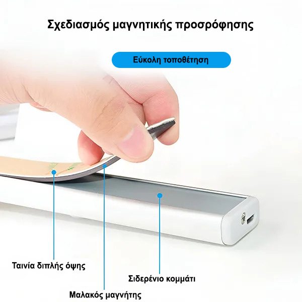 Κολλήστε το κοντά στην πόρτα του μπάνιου ή στο εσωτερικό του. Ενεργοποιείται όταν πλησιάζετε, παρέχοντας ακριβώς αρκετό φως για νυχτερινές επισκέψεις χωρίς την έντονη φωτεινότητα του φωτός στο ταβάνι.