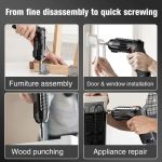 🔧 Εύκαμπτος άξονας για στενά σημεία – φτάνει σε γωνίες και σημεία όπου ένα κανονικό κατσαβίδι δεν μπορεί, ιδανικό για συναρμολόγηση επίπλων, επισκευές συσκευών και οικιακή συντήρηση