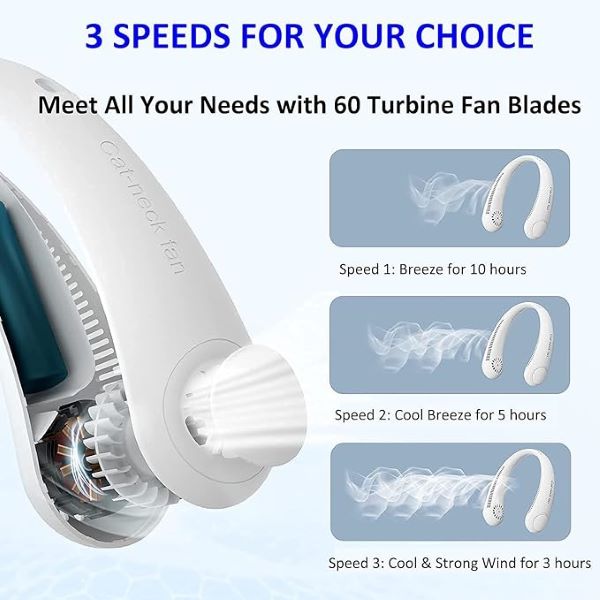 Ο ανεμιστήρας παρέχει μια εμπειρία με ελεύθερα χέρια, αφού κρέμεται άνετα γύρω από το λαιμό σας. Αυτή η πρακτική συσκευή θα σας κρατήσει δροσερούς και αναζωογονημένους κατά τη διάρκεια των ζεστών ημερών και βραδιών.