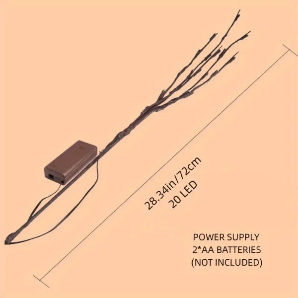 Αυτά τα κλαδιά ιτιάς με φωτάκια λειτουργούν με 2 x μπαταρίες AA (οι μπαταρίες δεν περιλαμβάνονται) και παράγουν ελάχιστη θερμότητα ακόμη και μετά από εκτεταμένη χρήση.