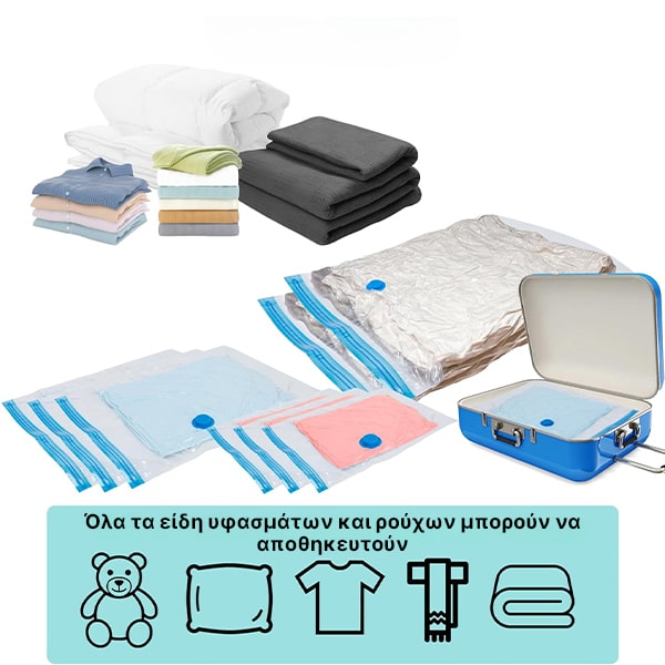 Ζείτε σε μικρό διαμέρισμα ή χρειάζεστε επιπλέον αποθηκευτικό χώρο; Αυτές οι σακούλες είναι επαναστατικές για την οργάνωση της ντουλάπας, της βαλίτσας ή της αποθήκευσης κάτω από το κρεβάτι εύκολα και αποτελεσματικά.