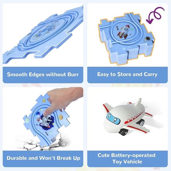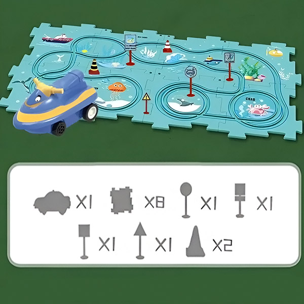 Το σετ περιλαμβάνει πολλαπλά κομμάτια πίστας που επιτρέπουν στα παιδιά να δημιουργούν εύκολα διαφορετικές διατάξεις, ενισχύοντας τη δημιουργικότητά τους και τις δεξιότητες επίλυσης προβλημάτων.