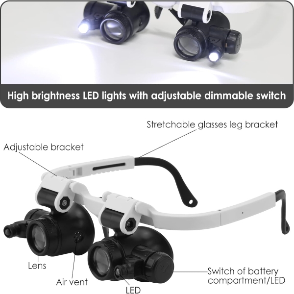 Εξοπλισμένο με δύο ρυθμιζόμενα φώτα LED, αυτός ο μεγεθυντικός φακός εξασφαλίζει βέλτιστο φωτισμό σε συνθήκες χαμηλού φωτισμού για πιο καθαρή θέαση.